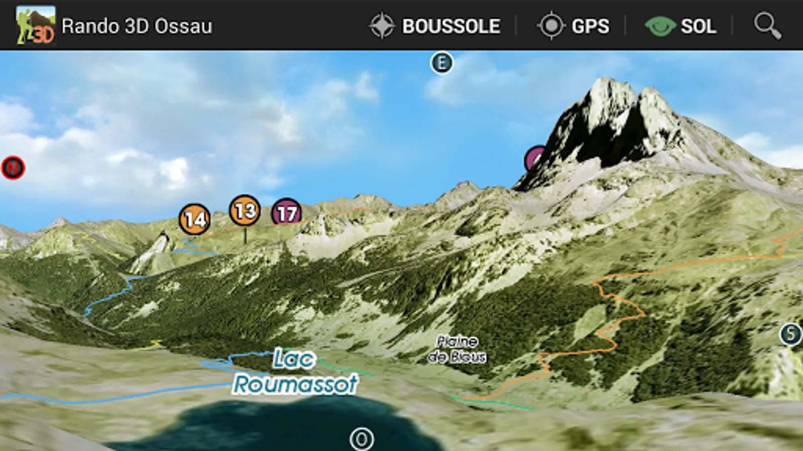 The compass mode is integrated in 3D, the cardinal points are oriented according to the manual movements or map automatically orients the north by activating the compass mode directly from the 3D.
