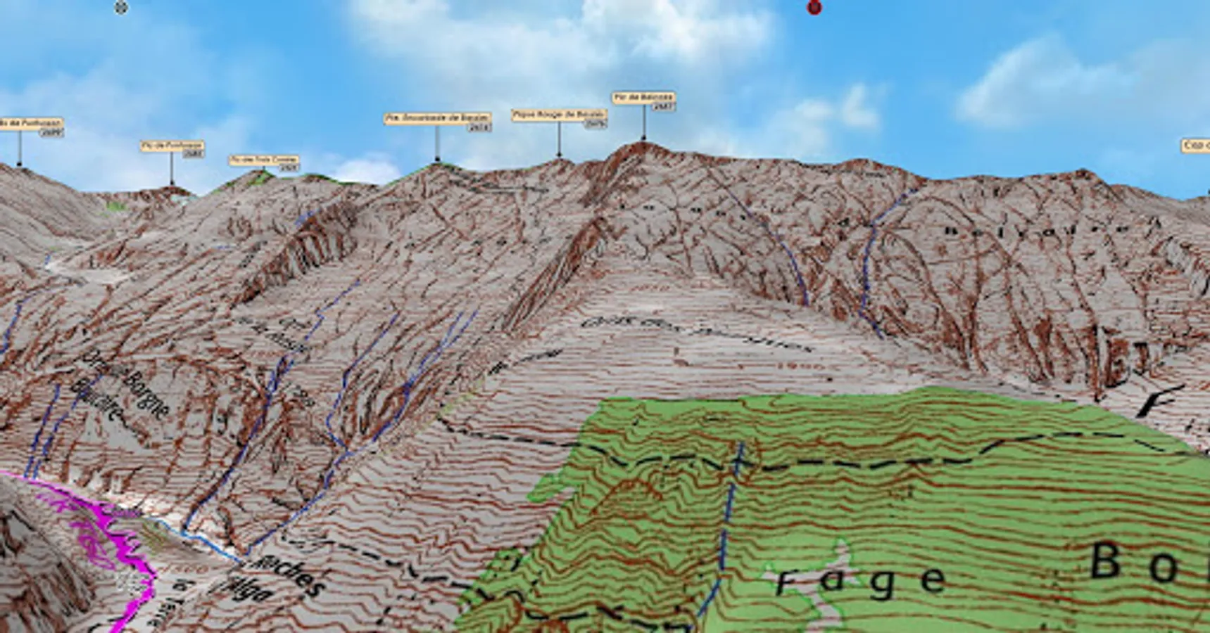 ○ The app has a 3D IGN 1.25 000 map and an AERIAL IMAGE.