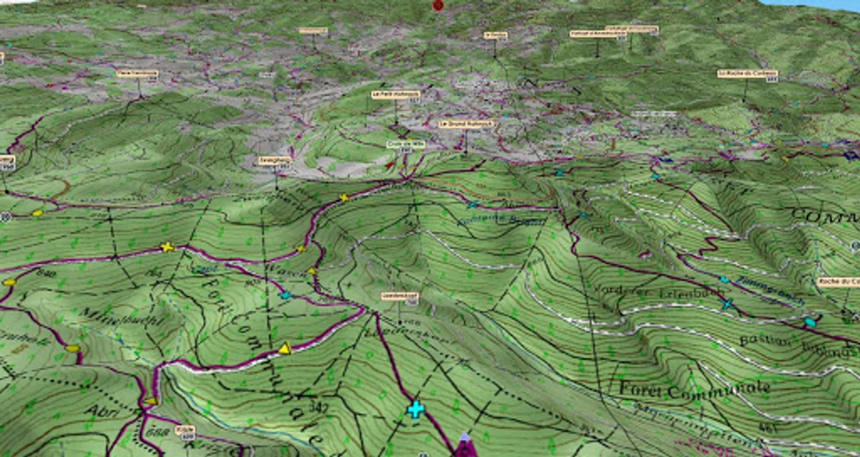 Preview and test the 3D map (648 km2) 3718 OT on the Club Vosgien website,
