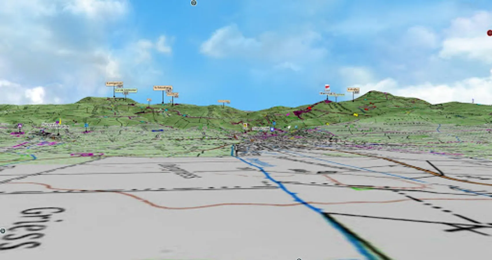 Moving the camera on the ground allows you to appreciate the details of the route to be followed in total immersion in the relief.