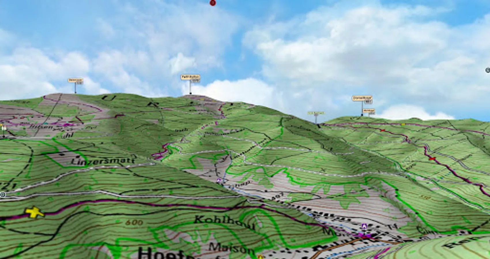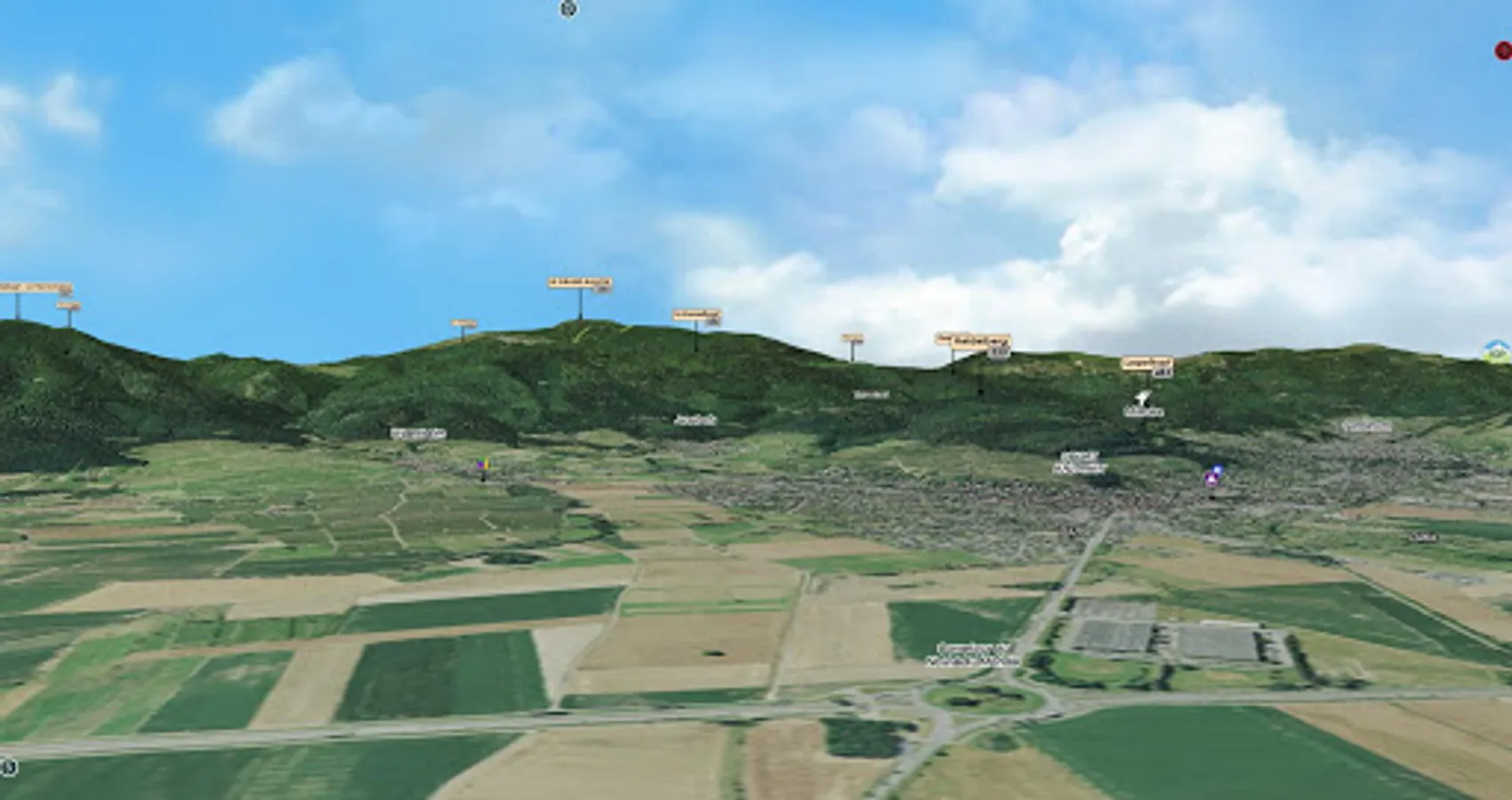 The compass mode is integrated into 3D, the cardinal points orient themselves according to manual movements or the map automatically orientates to North by activating the compass mode.