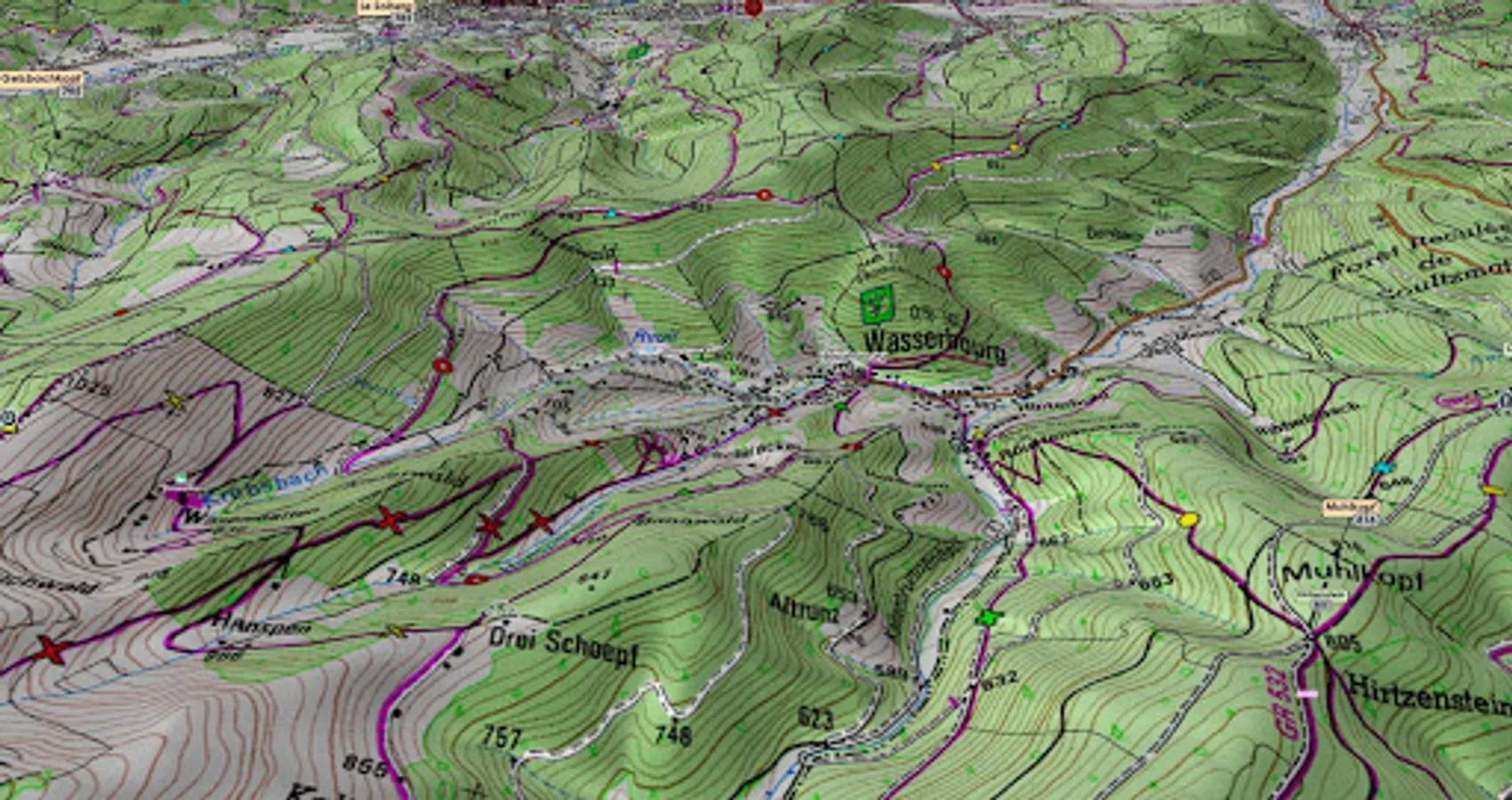 Preview and test the 3D map (642 km2) 3719 OT on the Club Vosgien website,