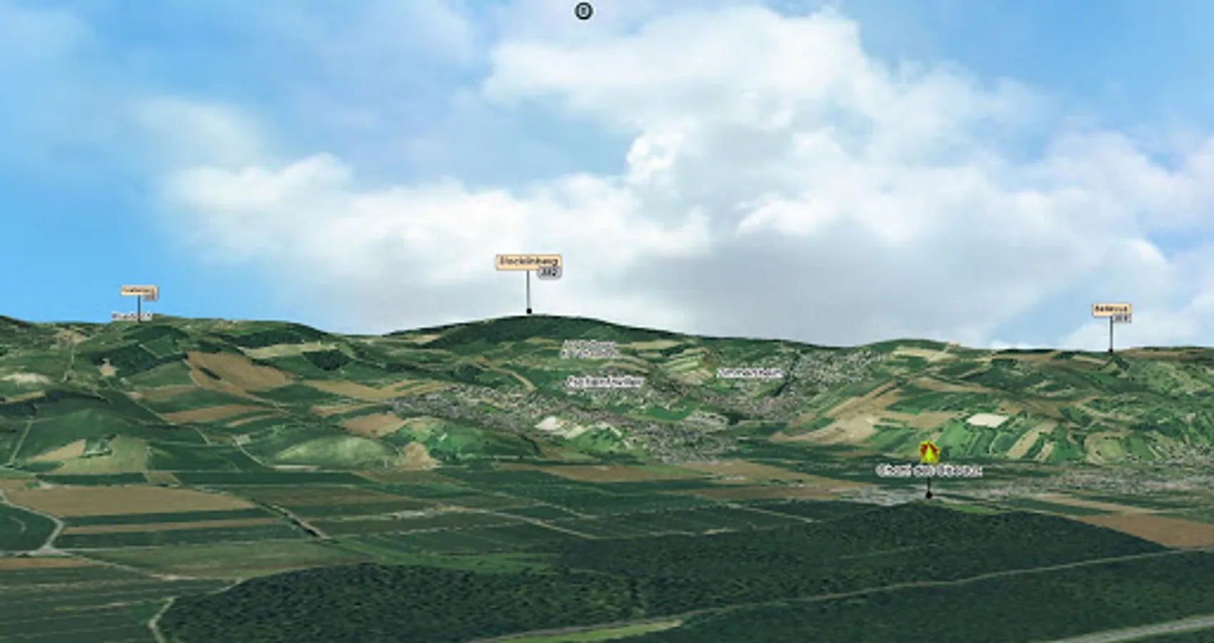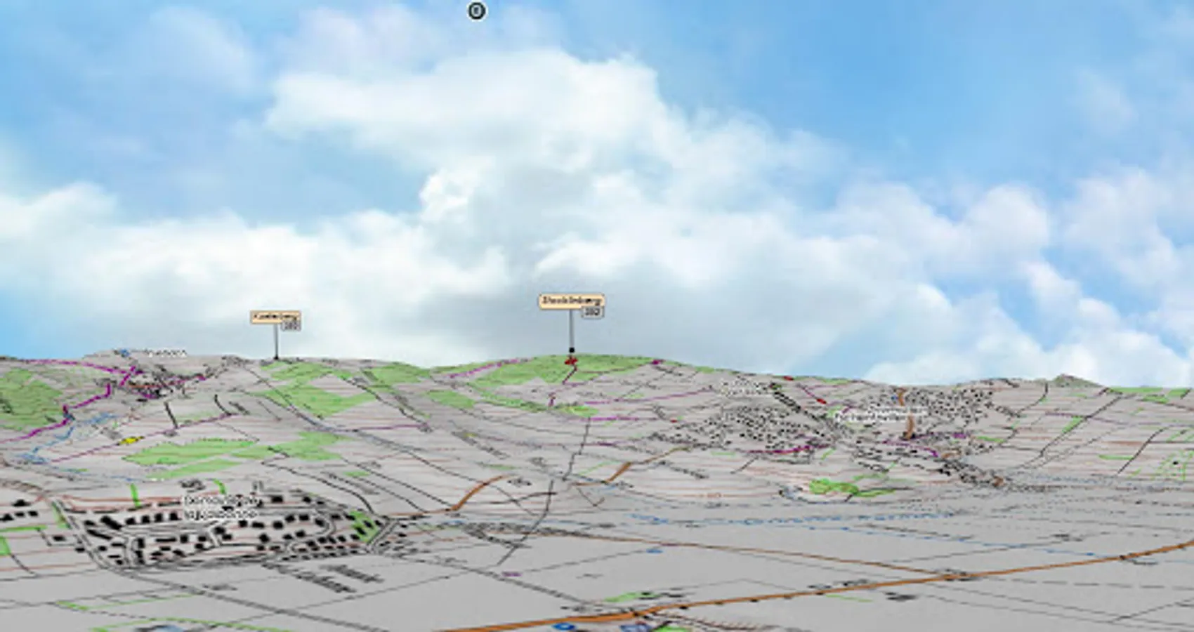 The compass mode is integrated into 3D, the cardinal points orient themselves according to manual movements or the map automatically orientates to North by activating the compass mode.