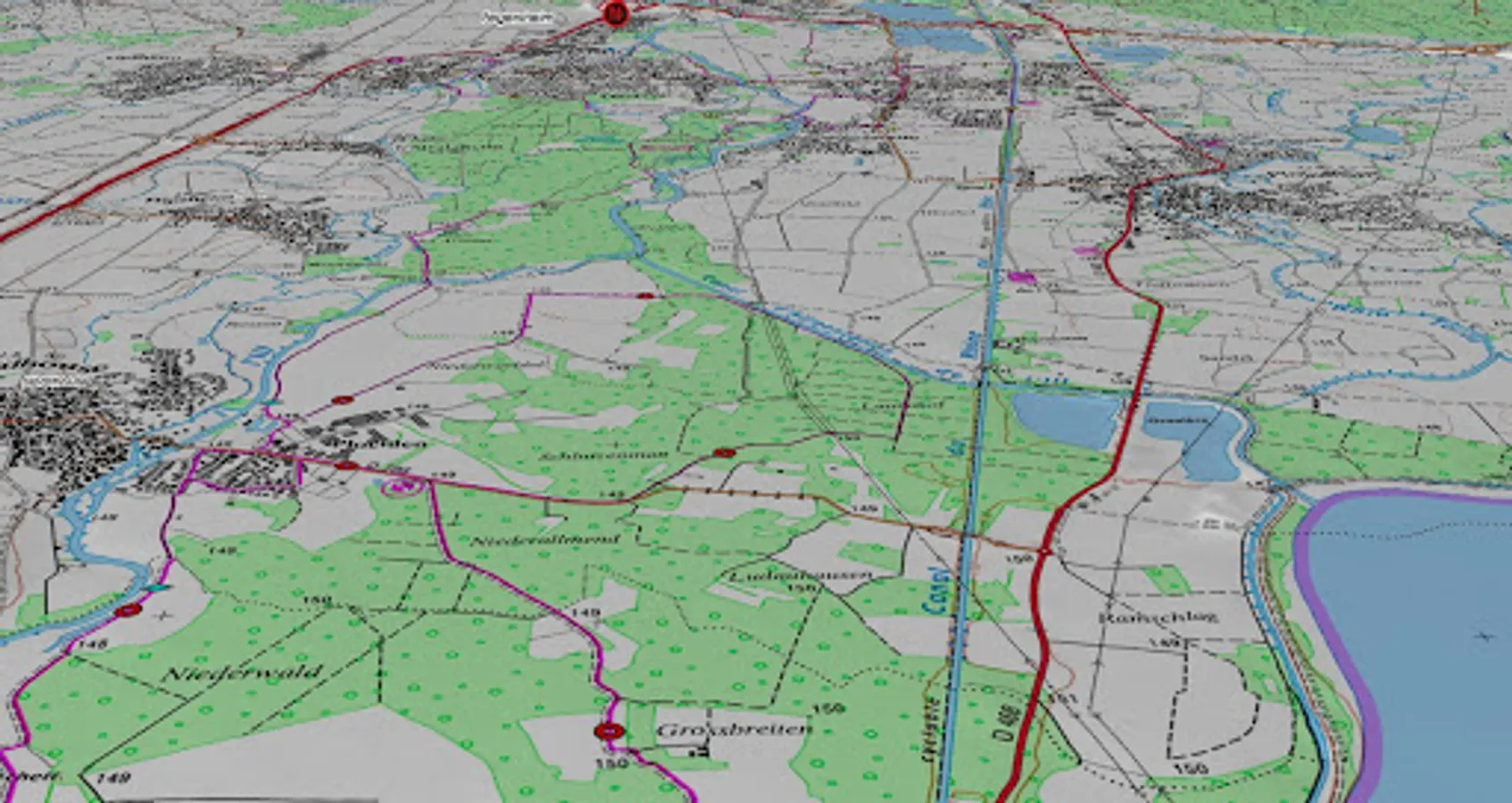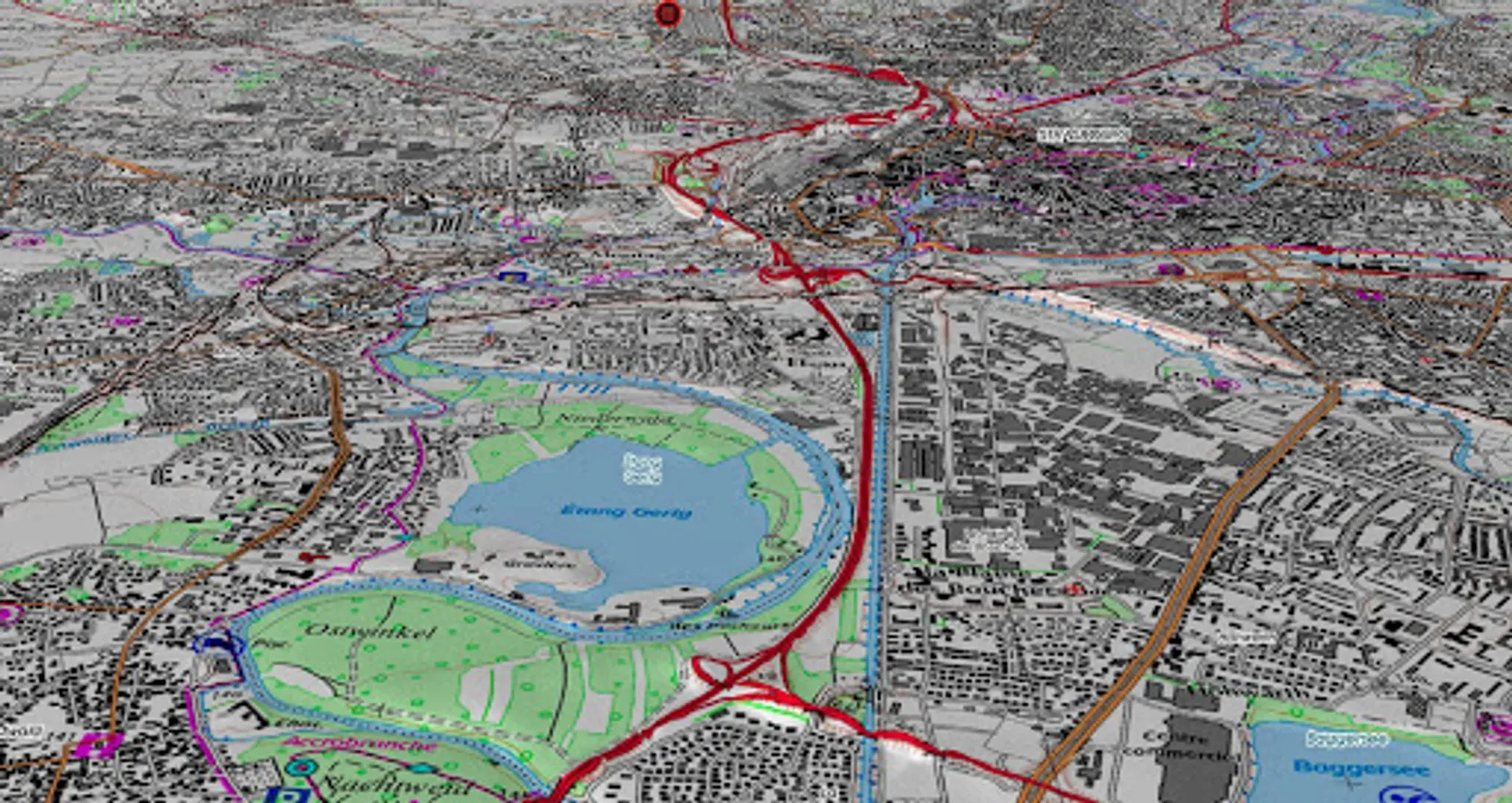 The compass mode is integrated into 3D, the cardinal points orient themselves according to manual movements or the map automatically orientates to North by activating the compass mode.