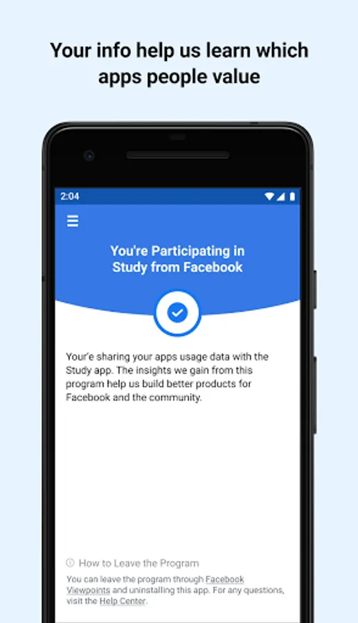 Facebook Viewpoints participants invited to the Study program will need to download this app in order to participate.