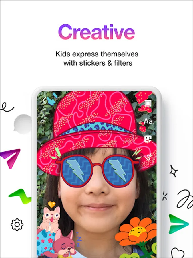 Stickers, GIFs, emojis, and drawing tools give kids more ways to express themselves.