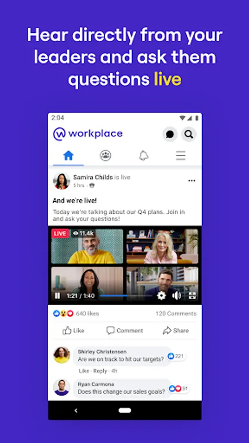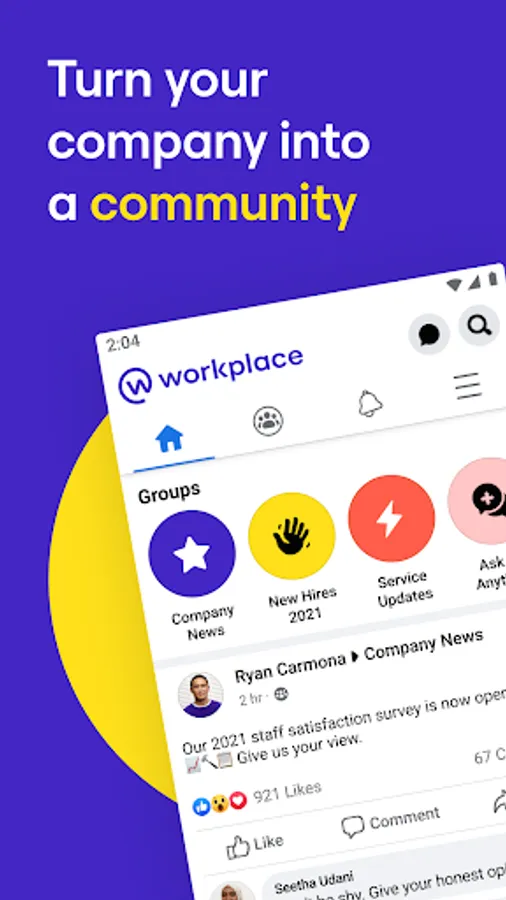 Workplace is ad-free and totally separate from Facebook. So you and your team can concentrate on aligning your goals, building successful working relationships and turning your company into a community.