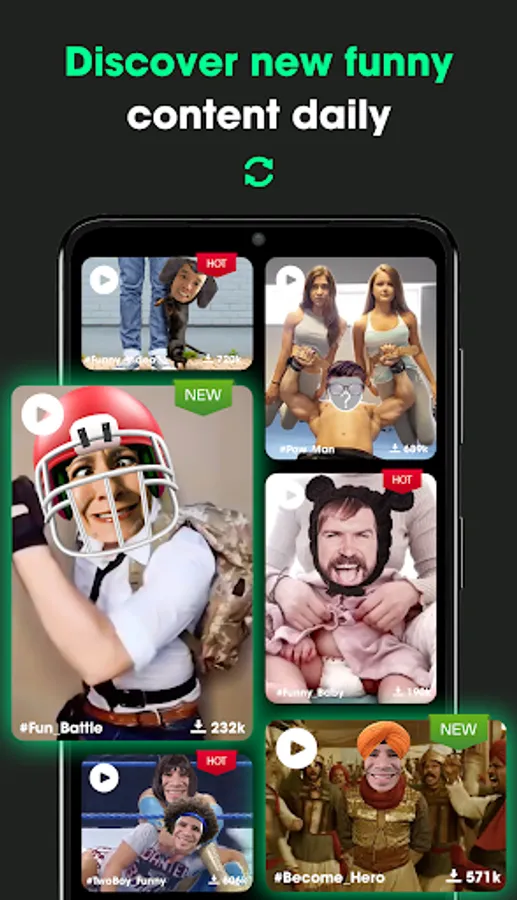 All you need is a photo of yourself to get your face and app will upload to FaceFunny video clip template. This app will reface your face into face character in short video.