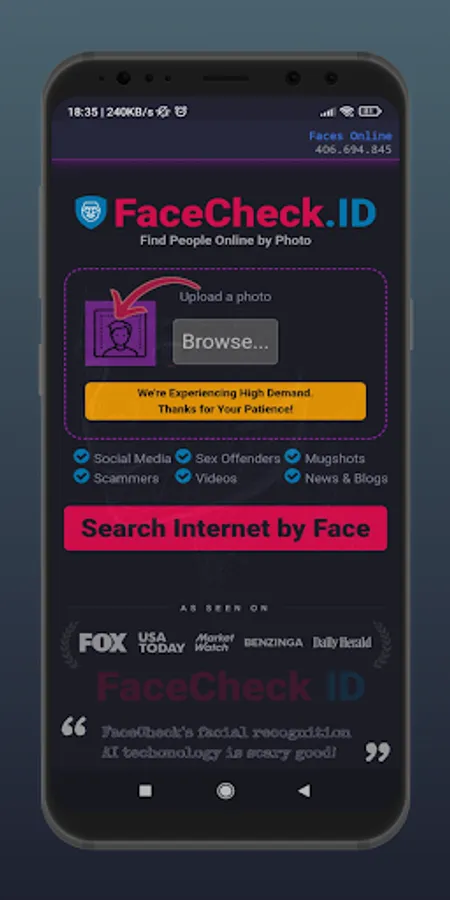 using Face Search Engine it is possible to scan your image database and find all the results that match the photos you have uploaded. Use the photo scanner to find the entire profile of the person using the powerful face search engine of Face Search Engine.