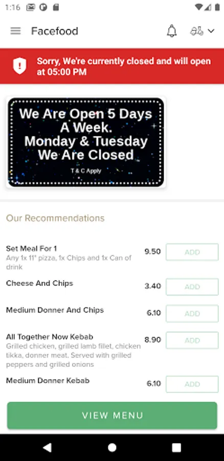 Thank you for visiting Facefood in Leeds. We hope you enjoy our online ordering app and your food.