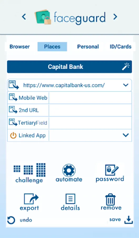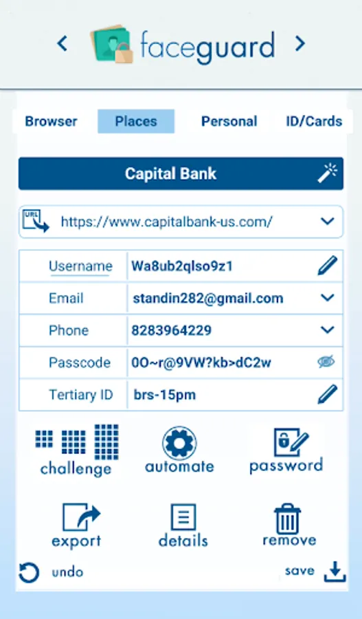 FaceGuard authenticates identity. Unlike requiring a password, FaceGuard uses the human ability to recognize personally familiar faces in a crowd of strangers. After confirmation, FaceGuard supplies the correct username and passcode for all your web sites, apps, and desktop programs.