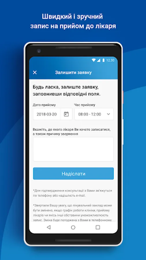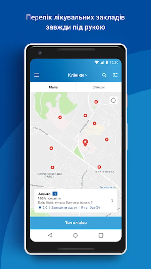 This allows you to get information about insurance programs and procedures for compensation exceptions, contacts and other assistance services. The Cabinet contains a list of medical institutions and an interactive map on which they are displayed, forms an appointment to doctors forms of complaints and suggestions, and more.