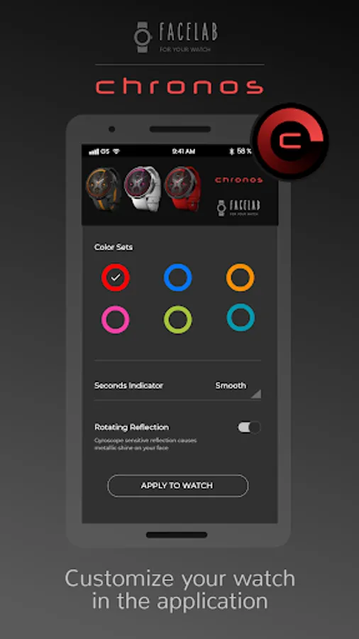 Once installed, you can select the Chronos Watch Face from Wear OS App.