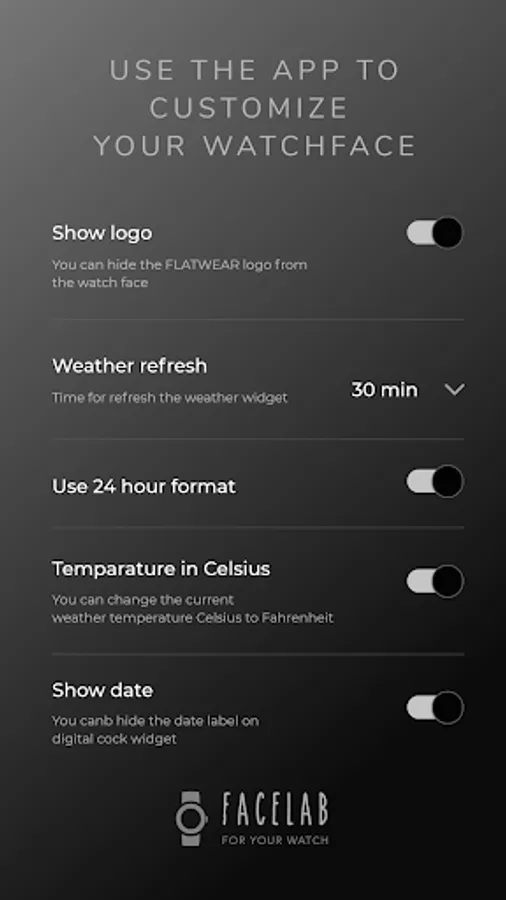 Once installed, you can select the Flatwear Watch Face from Wear OS App.