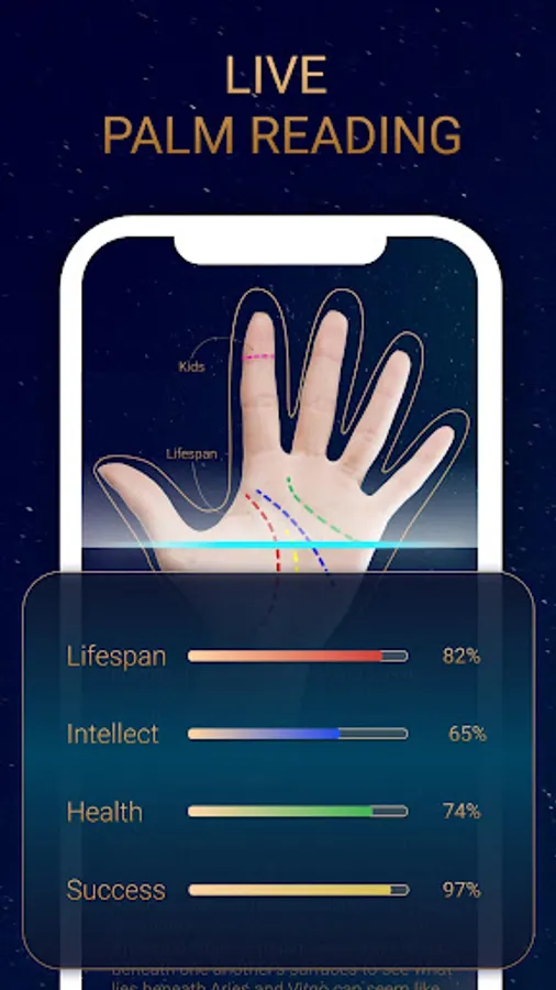 All the horoscope and palmistry data is based on your personal information (name, gender and the date of birth) and the analysis of your palms’ photo.