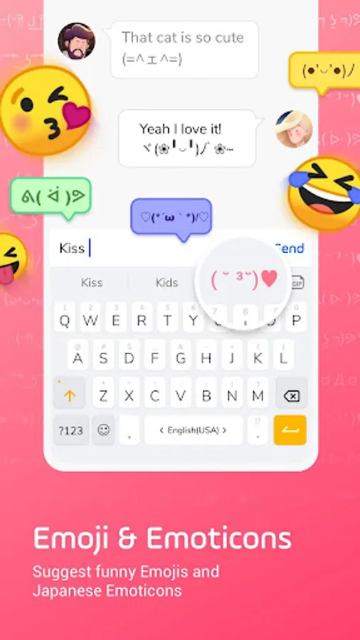 - πEasy to type Emojis in text messages, social media posts, emails, etc.