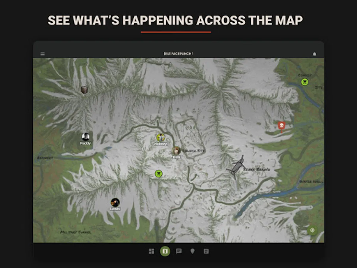 View the full server map to find points of interest, see where your teammates are and check on vending machines. You can also track ongoing events like the attack helicopter and cargo ship.