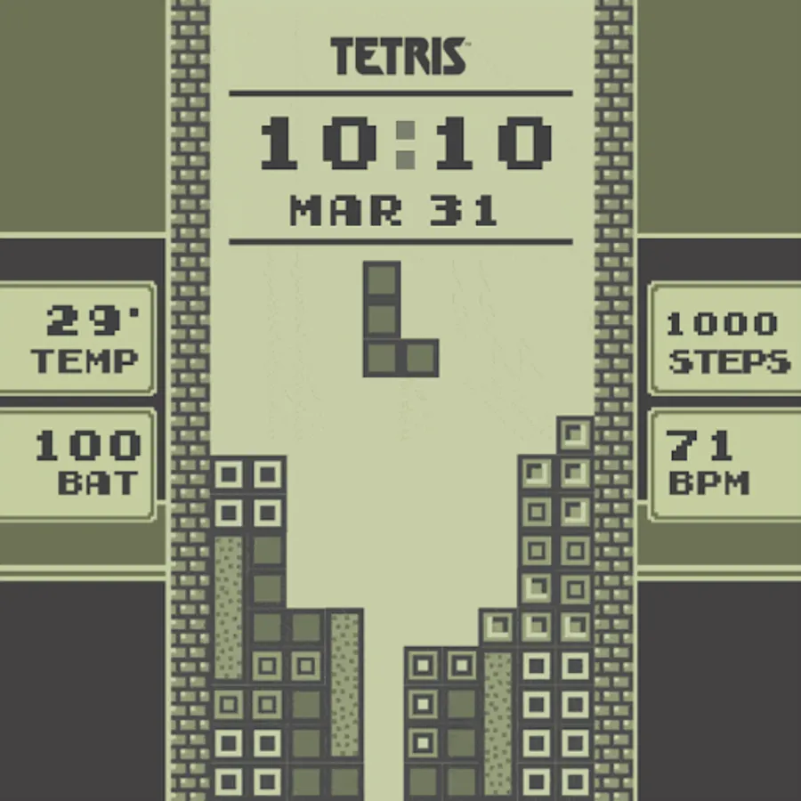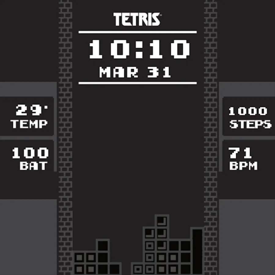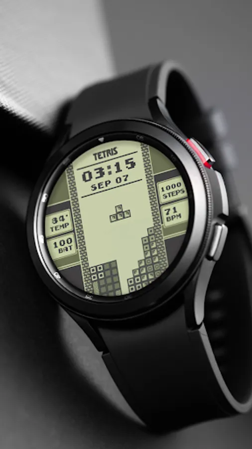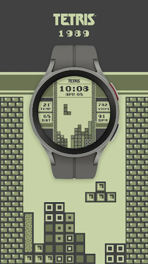 Animated Watch face for Wear OS inspired by one of the most iconic versions of the Tetris® game.