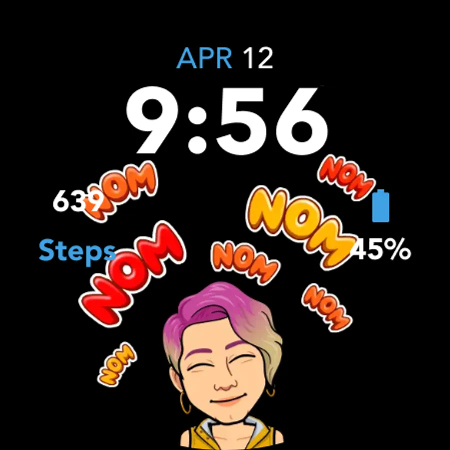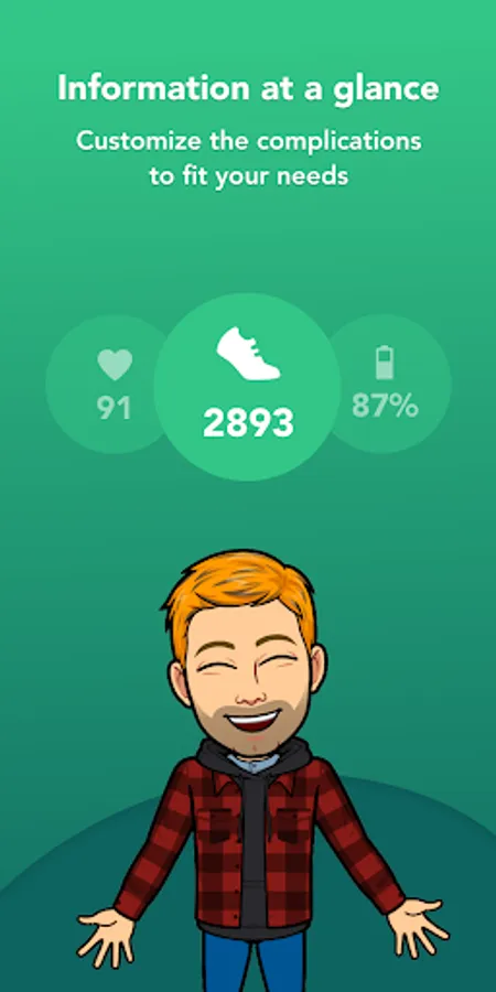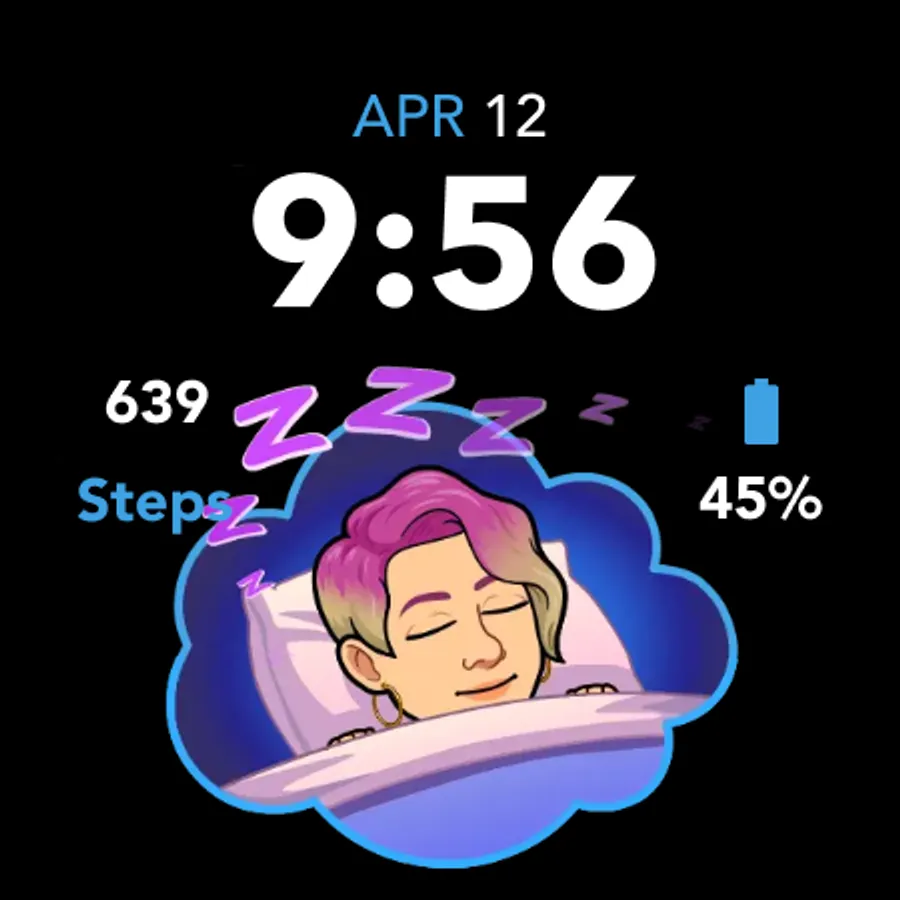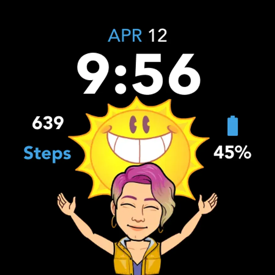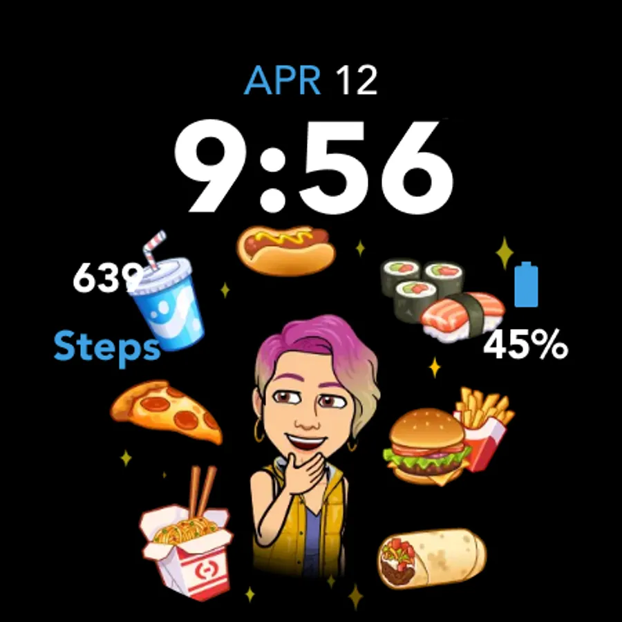 Connect your watch face to your Bitmoji account and get a new animated Bitmoji on every wrist-flick. The watch face can react to: