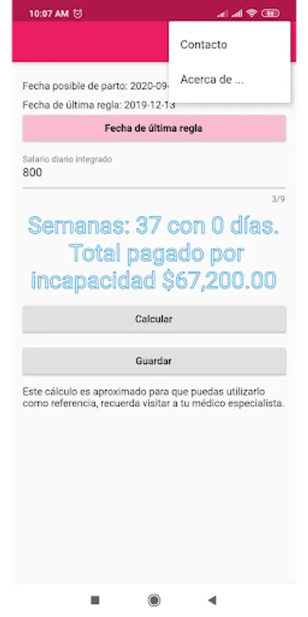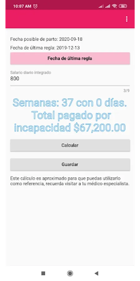 It is only necessary that you know your last rule date and the integrated daily salary. Remember that this calculation is approximate so that you can use it as a reference, remember to visit your specialist doctor.