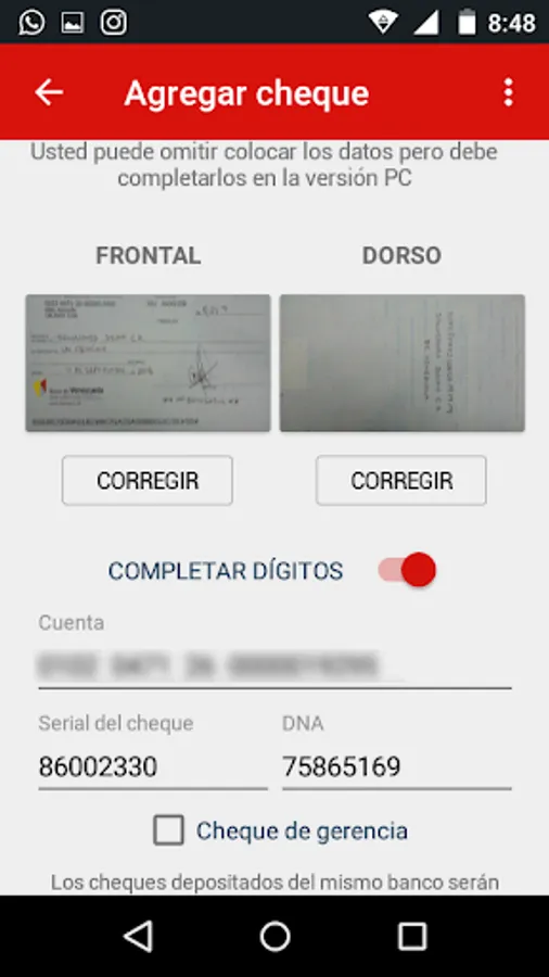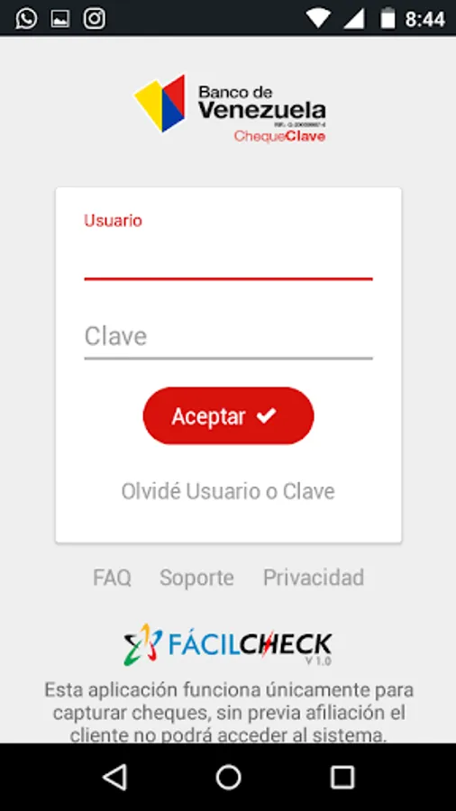 With Check key you can deposit checks conveniently and easily from your mobile device, with the guarantee that you will have those funds the same day, if it is from the BDV, and in 24 working hours if it is from another bank.