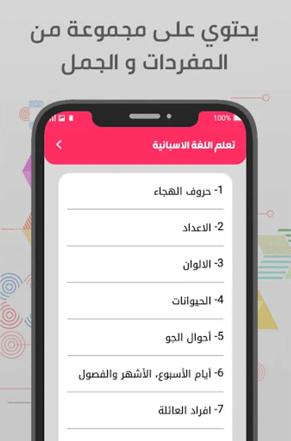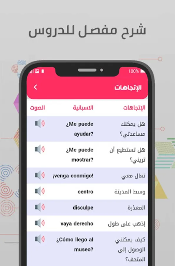 إضافة الى ذلك يحتوي البرنامج تعليم اللغة الاسبانية للمبتدئين على العديد من الدروس وذلك عن طريق ترجمة عربي اسباني بدون نت مما يجعلكم قادرين على الفهم السريع للغة الاسبانية