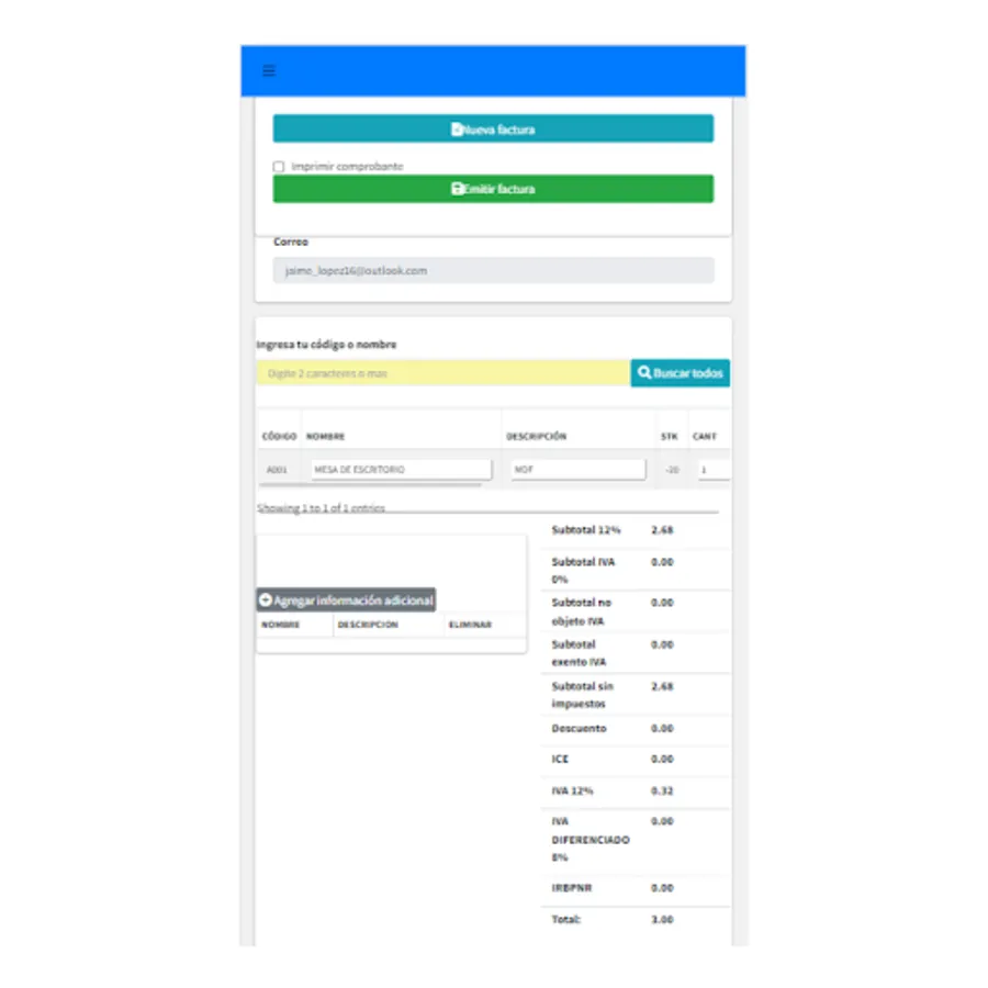 The system is web mode and can be accessed from any device such as a computer, tablet or telephone, the system is multi-agency, with several issuance points and several users, it can also be integrated with any other system that does not have electronic invoicing
