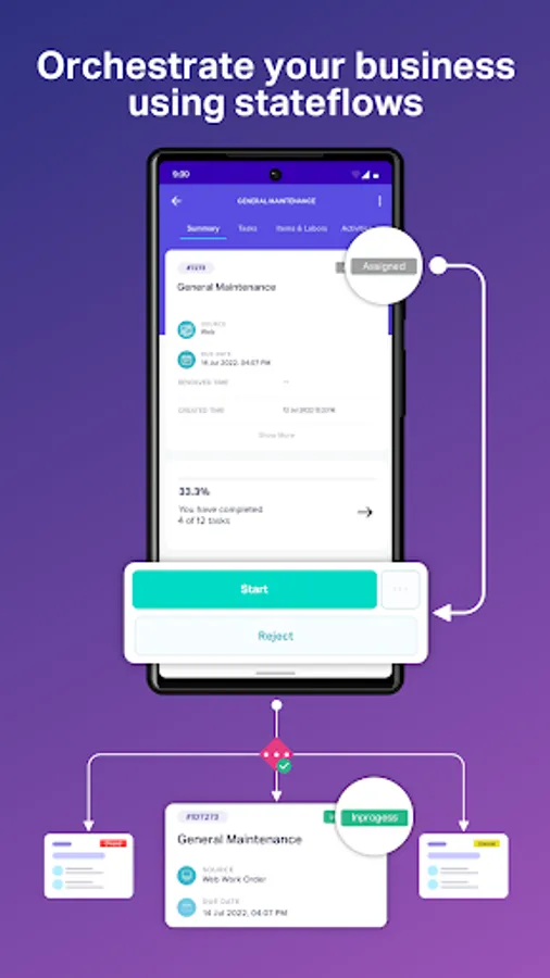 Create work orders without any hassle in just a tap and manage them easily in a single view.