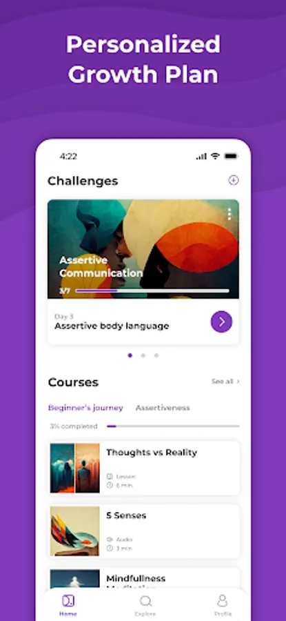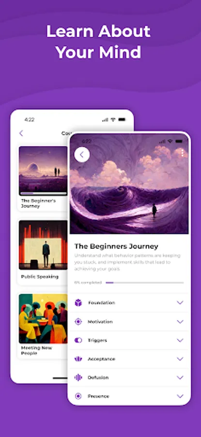 FACING IT is built together with world-class Ph.D. psychologists and it includes techniques from Cognitive Behavioral Therapy (CBT), Acceptance and Commitment Therapy (ACT), and Exposure therapy to help you overcome inner resistance, understand how your mind works, and take action that brings you closer to your true self.