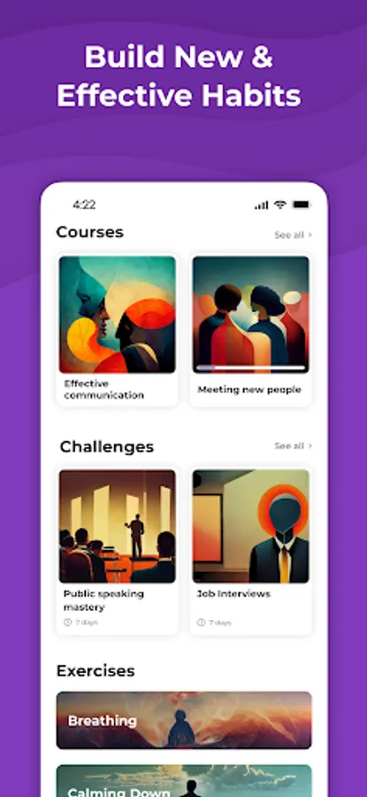 FACING IT is an app that will help you overcome social anxiety and engage effectively in the social situations you find difficult. The goal of this app is to challenge yourself with small actions every day to help break the cycle of social anxiety and develop self-confidence, mindfulness, psychological flexibility, and resilience to stress.