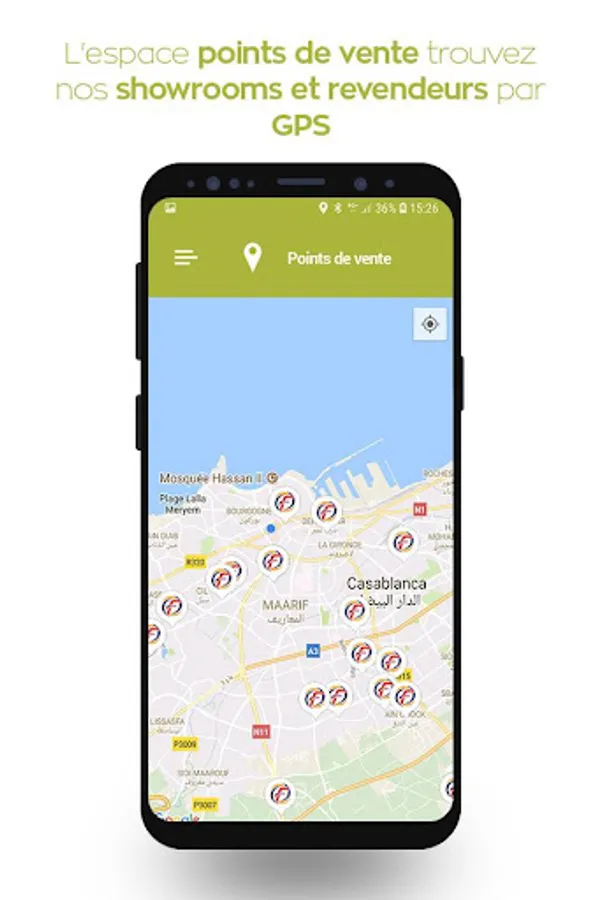 - Contacts of our showrooms and point of sales by geolocation or phone.