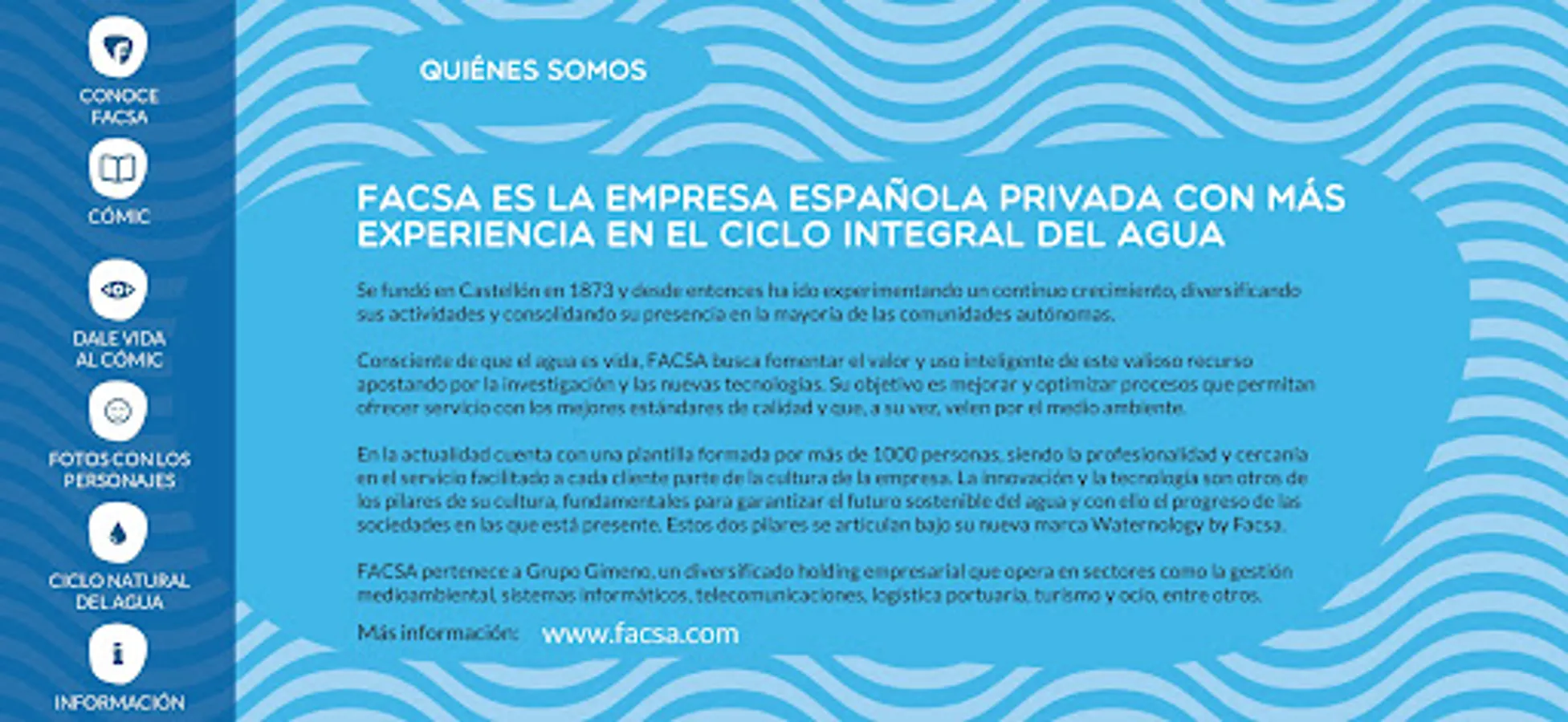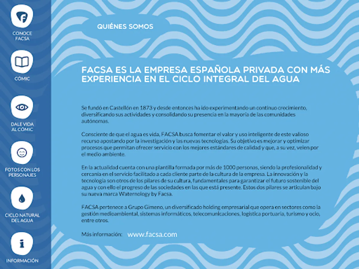 Increase all your knowledge about The Integral Water Cycle in a fun, simple and fascinating way from the hand of FACSA: the Spanish private company with the most experience in water management.