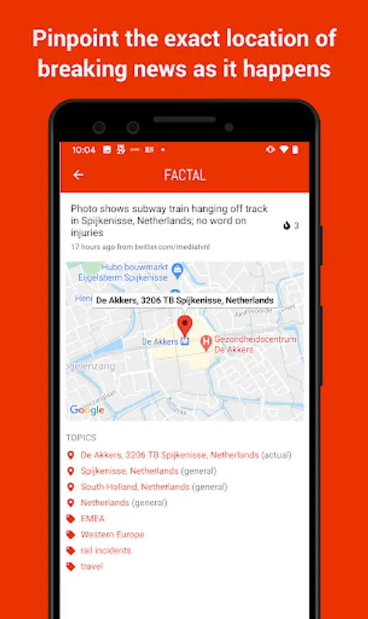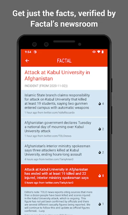 From the founders of the popular Breaking News app, Factal notifies organizations of unexpected global events ahead of other news sources. Powered by journalists and technology working together in real time, Factal gives companies the facts they need to protect people and avoid disruptions.
