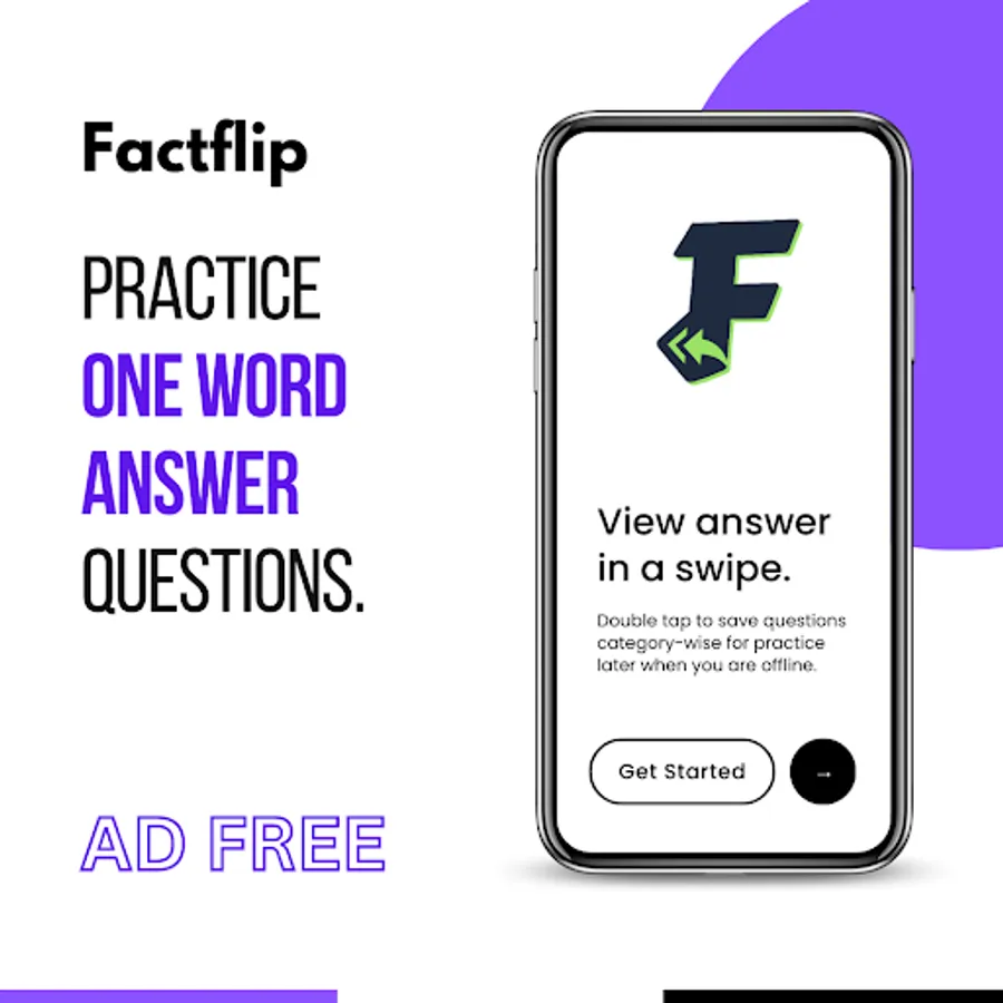 Factflip is a one word answer type exam preparation app. Here you can practice all subjects quiz questions, GK, facts and knowledge for study.