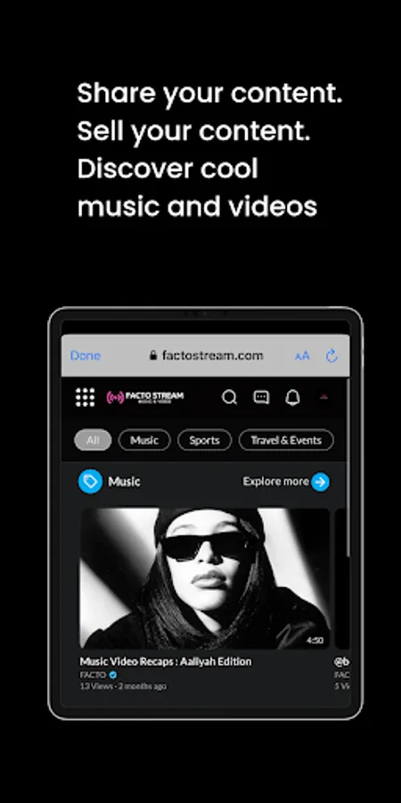 Music & Video Live streaming available for any for of artist, event, interviews, movies, stand up specials or other experiences within FACTO, or enjoy live stream of other users.