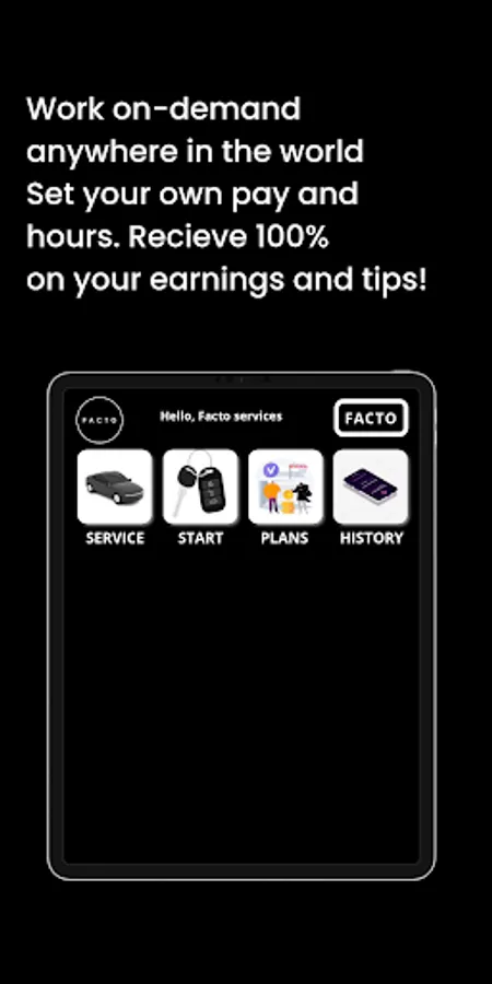 Call for your nearest FACTO driver or service provider in your radius/area and book rides/services with ease. We keep our Competitive prices reasonable for our customers and payment for our drivers or service provider. Earn up to 90% + keep 100% Tips.