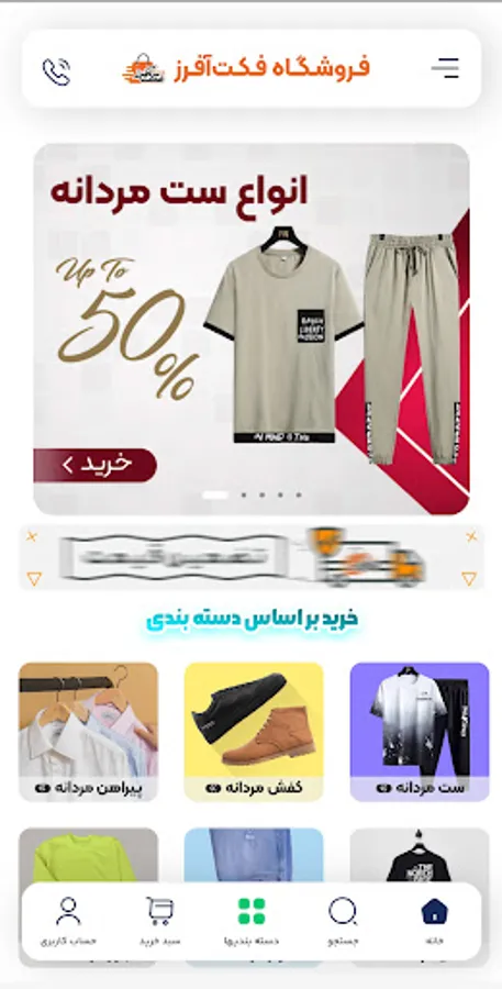 FactOffer application - an online sales program for menswear at the best market price Supply of ketone and sports shoes for men Auction of quality and cheap T-shirts and polo shirts Sweater and sports pants set Bag, watch All kinds of pants and shirts and .... Online shopping and auction of men's clothing with special and exceptional discounts, payment on the spot upon delivery Send to all parts of Iran