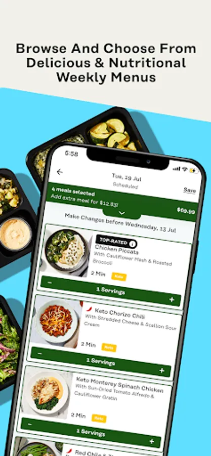 Our nutritious meal plans offer 29+ meals and recipes every week from a rotating menu that feature options from Keto, Vegan, Vegetarian, low-carb, and low-calorie diets. You can also add snacks, drinks and other wholesome add-ons to your food delivery order.