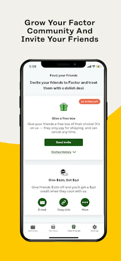 The Factor food delivery app provides meals that fit all tastes and preferences. When you make choices to your meal plans, our app will personalize future weekly meal selections to keep you diet fun and exciting.