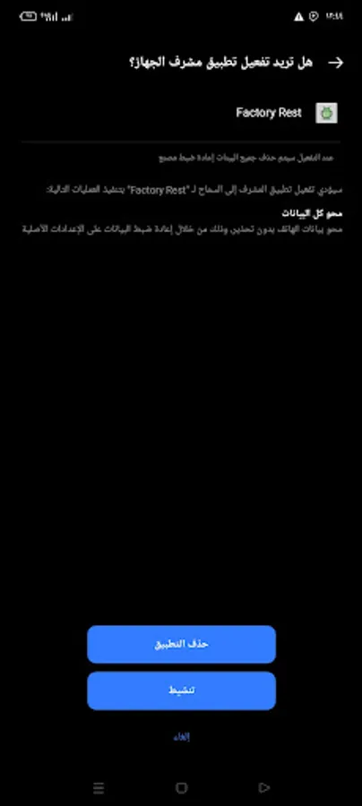 Factory reset Delete all data Delete all applications and information without a password and without an account