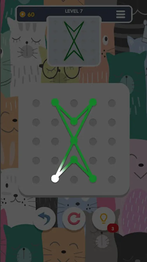 Cat connect dot is a simple way to get brain training exercise everyday and also have fun with it. This is a great mind challenging game with simple rules. Try to drag any line to a point, and divide it into two new lines; the new lines can also be divided. Again and again