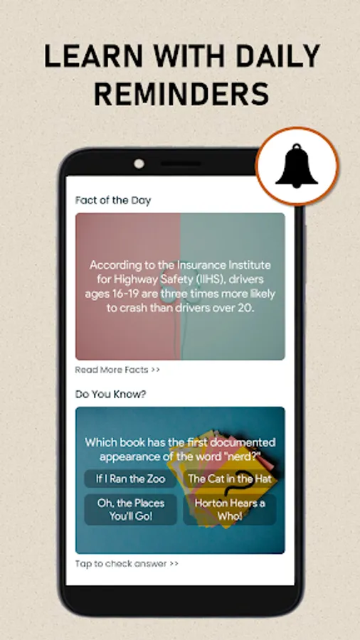 With this amazing facts app, you can not only read amazing facts but also download fun facts cards and share these amazing facts with your friends. Play facts games offline or online (facts quiz) to test your facts knowledge and earn points. Just answer the facts questions everyday and become the ultimate Facts Master. If you can't answer the facts questions or facts quiz, no worries, just read our collection of facts everyday (Facts of the day) with our daily reminder and learn more. This is the perfect facts hub app or facts channel where you learn and test your facts knowledge.
