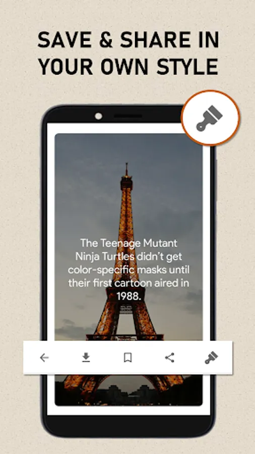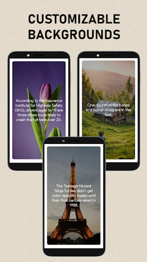 We always think about our users, so to enhance your experience, we are providing more power to you. You can now add your favorite font, background theme or upload your own image to any of the fun and amazing facts in the app. Now try this facts creator app while enjoy your facts everyday.