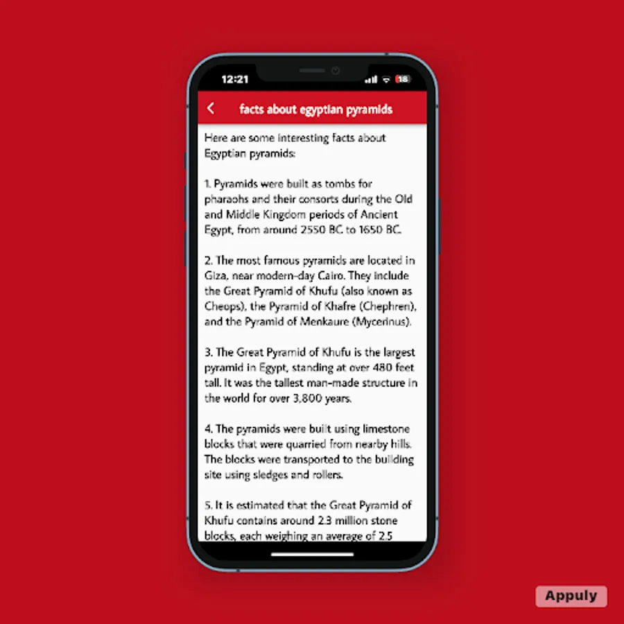 Speaking of the pyramids, our app is packed with facts about egyptian pyramids - from their construction to their purpose.
