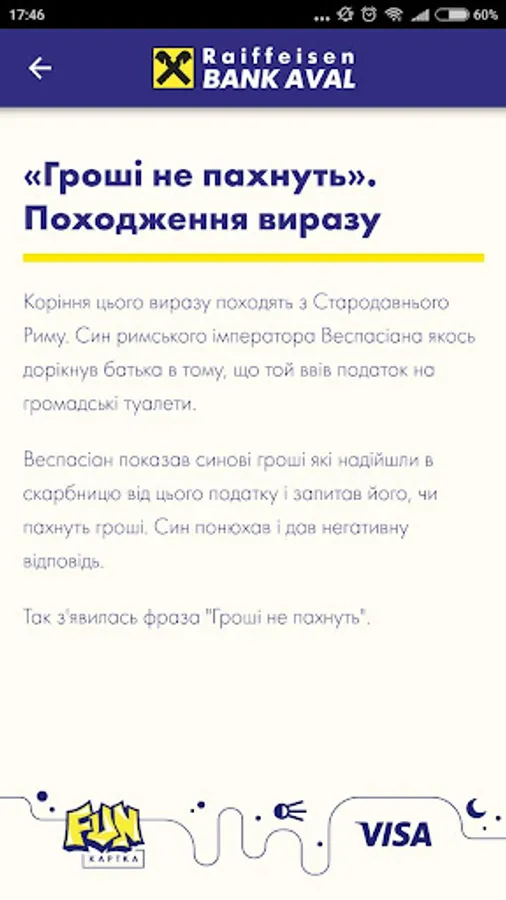 Sewage and educational activities, interesting tasks for processing which are "fans". Visa cardholder FUNcard of Raiffeisen Bank Aval in the personal account of the application can exchange them for a certificate recharge your mobile, the purchase of interesting, fun and music.