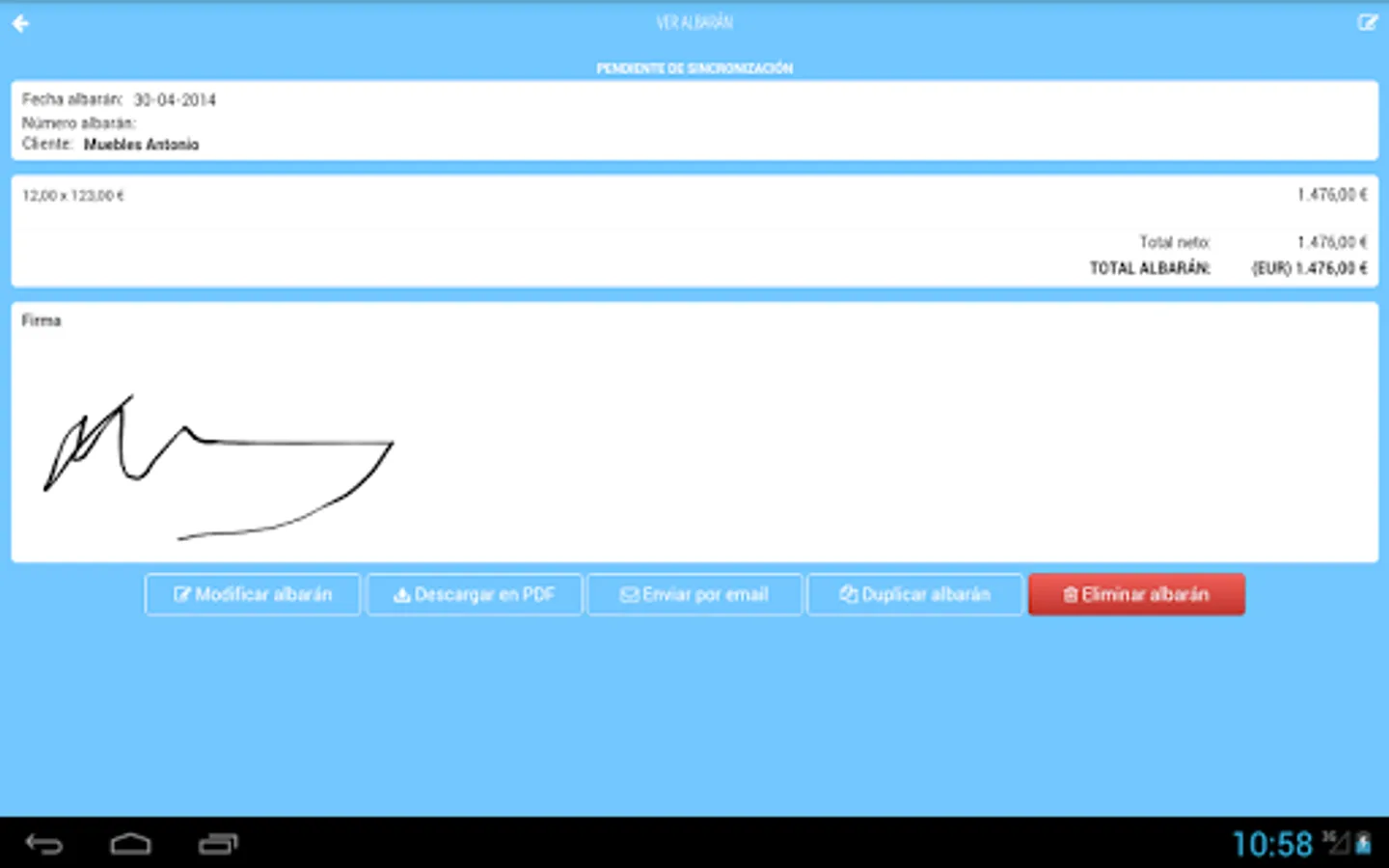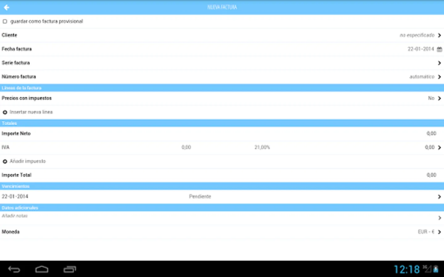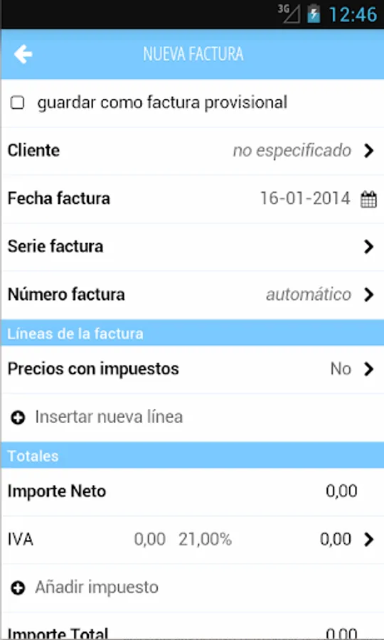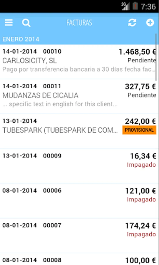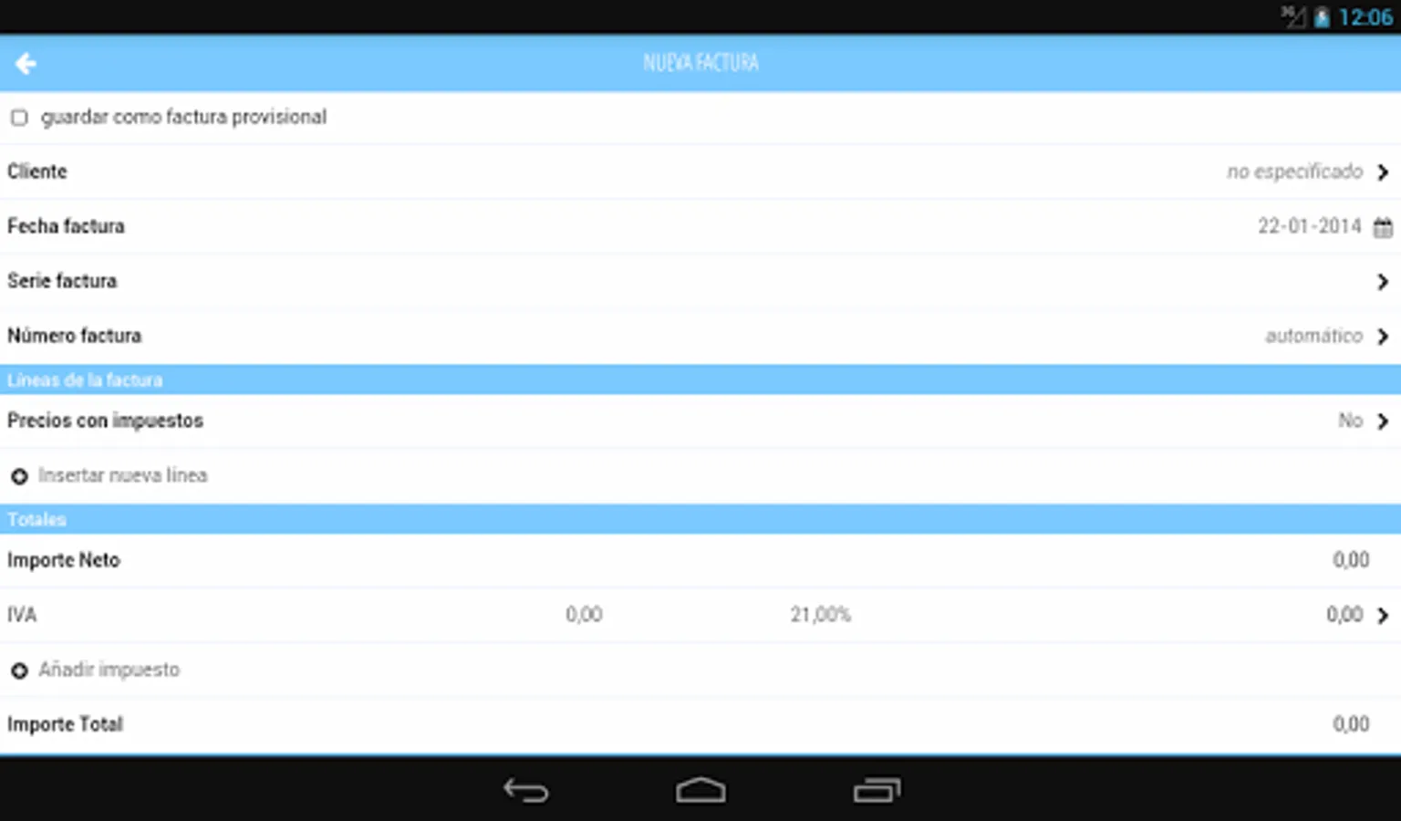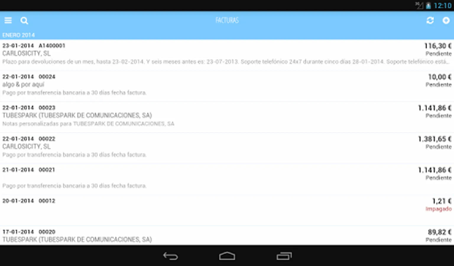 With the application of FacturaDirecta for accounts classical program, you can do it directly from the phone even without an Internet connection. At the time as you have Internet access, your data is automatically synced to your account FacturaDirecta.