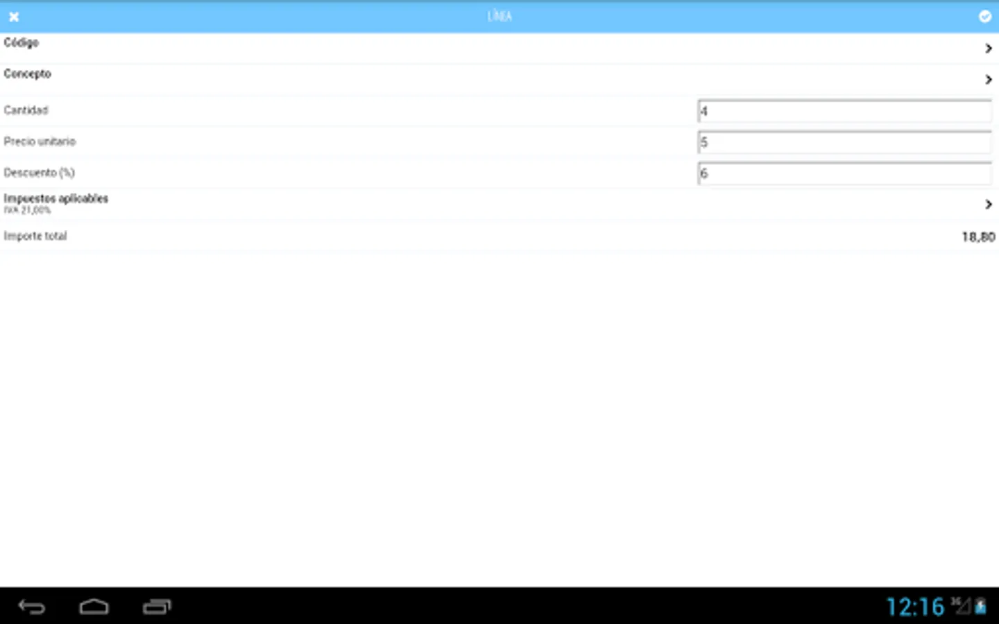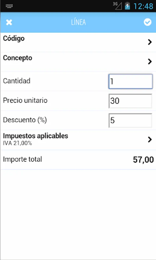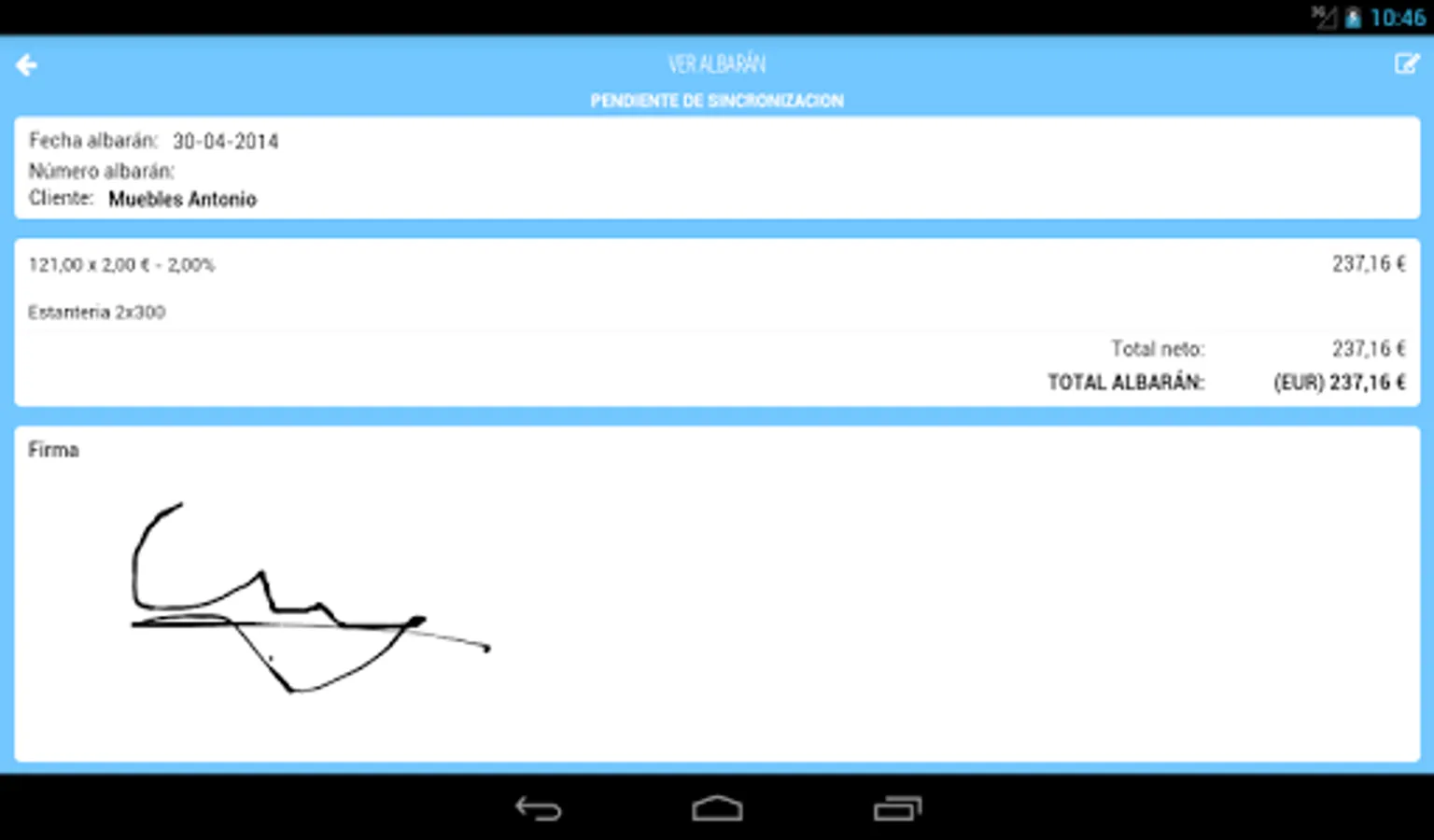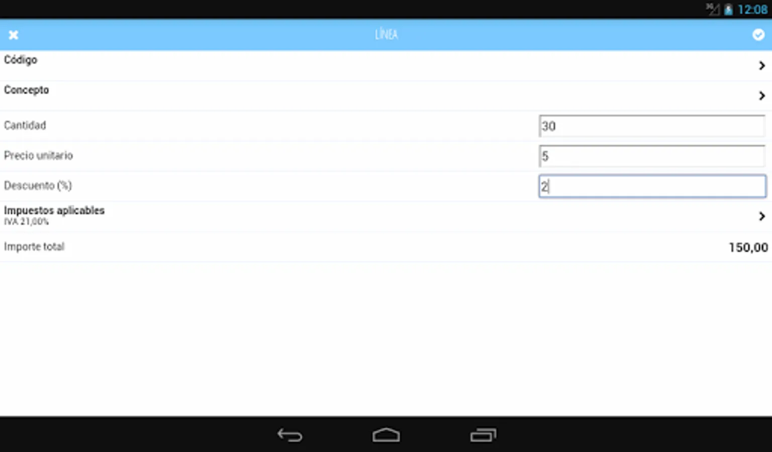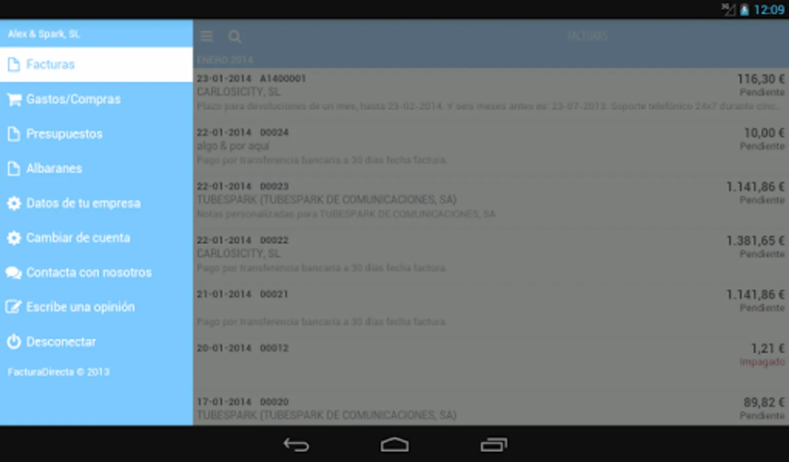 With the application of FacturaDirecta for accounts classical program, you can do it directly from the phone even without an Internet connection. At the time as you have Internet access, your data is automatically synced to your account FacturaDirecta.