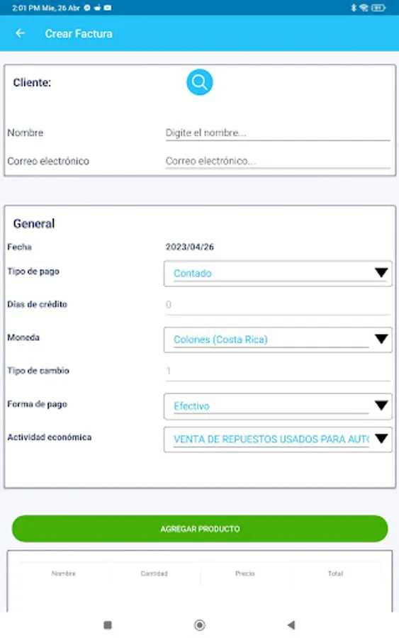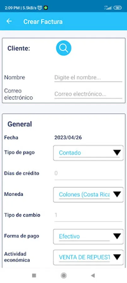 This application allows you to issue invoices, credit and debit notes, receipts, and proformas electronically in Costa Rica. It is mandatory to have a Billing account in order to use this application.