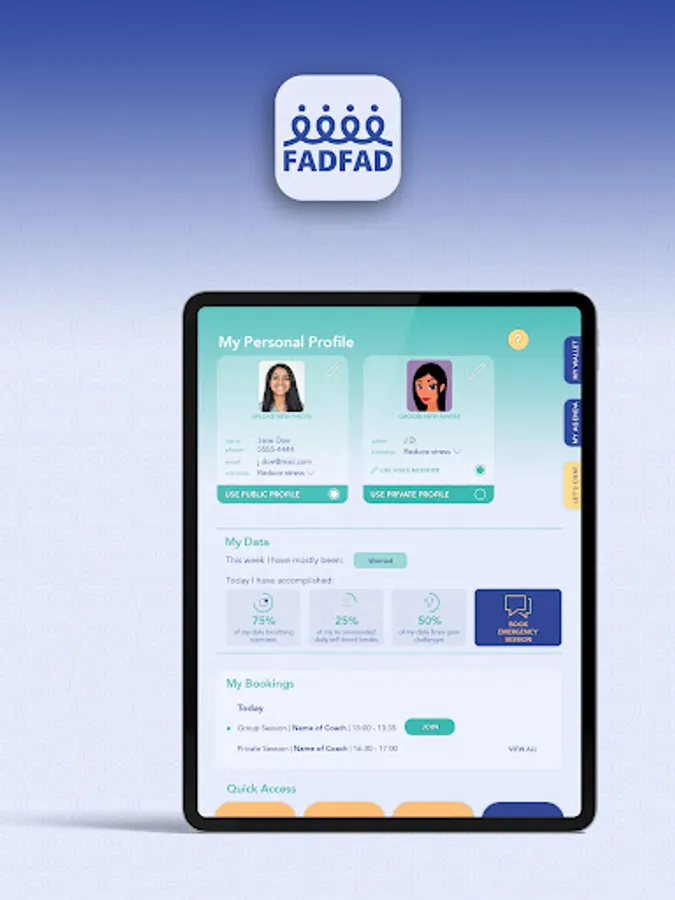 - Fadfad is a new, modern and scalable supportive platform that provides people a safe space to anonymously vent, discuss social issues, pressure, mental health with other members and coaches, as well as accessing wellbeing tips and products.