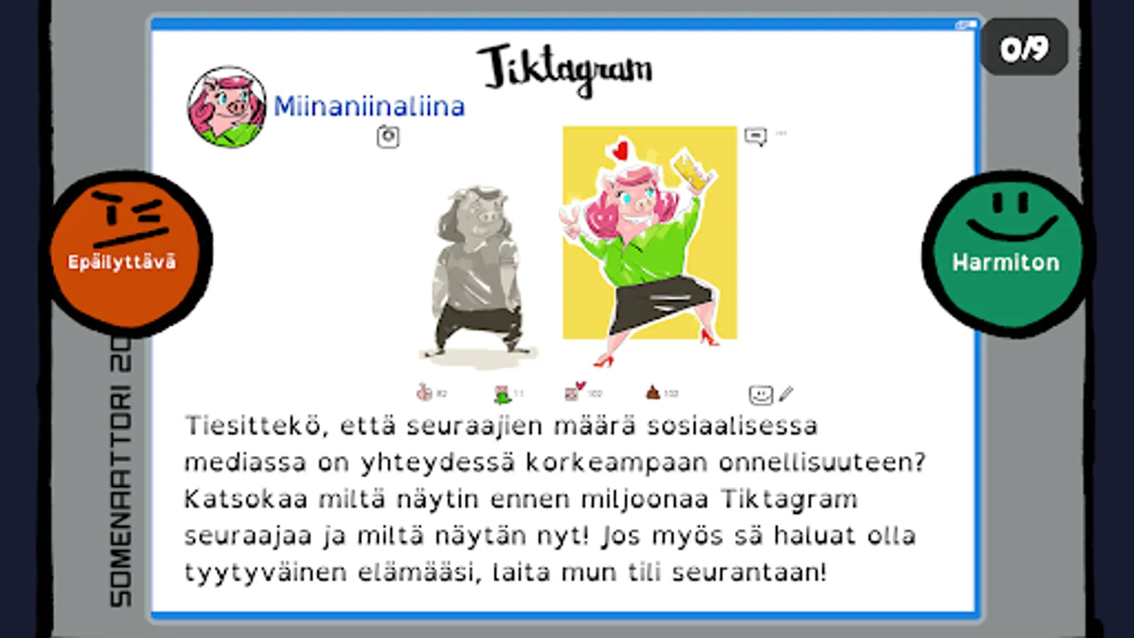 Some-etsivat is a learning game aimed at 9-15 year olds, which was developed in cooperation with the University of Jyväskylä. The adventure game is easy to learn and the game is suitable for all players regardless of skill level and experience.